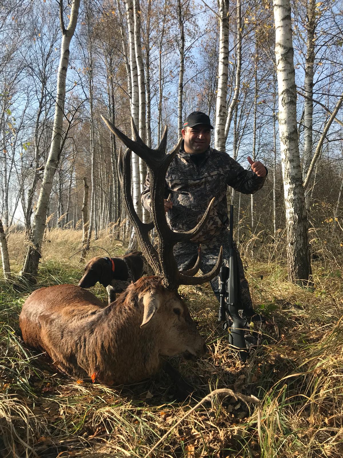 Полным ходом идет трофейная охота в нашем хозяйстве!  Погода этой осенью отлично подходит для проведения результативных охот, и если она такой и останется, то конец сезона выдастся для многих охотников очень удачным. Уже есть отличные результаты —  добыто несколько достойных оленей, из которых три трофея с оценкой серебряная медаль, два бронзовая и один трофей с золотой медалью. Золотую медаль заслуженно получил трофей москвича Сергея Новикова. Его добычей оказался старый олень с роскошными рогами, который был добыт в результате вольерной охоты. Уже изначально целью охоты было сделать эти прекрасные рога центром коллекции. Несмотря на то, что Сергей Новиков – москвич, трофей останется в Беларуси. Дело в том, что обладатель трофея имеет белорусские корни и вся его коллекция находится на Гомельщине. Всё же сезон еще не закончился, поэтому освободите свой график и отправляйтесь на охоту. Мы желаем Вам удачи в этом охотничьем сезоне!
